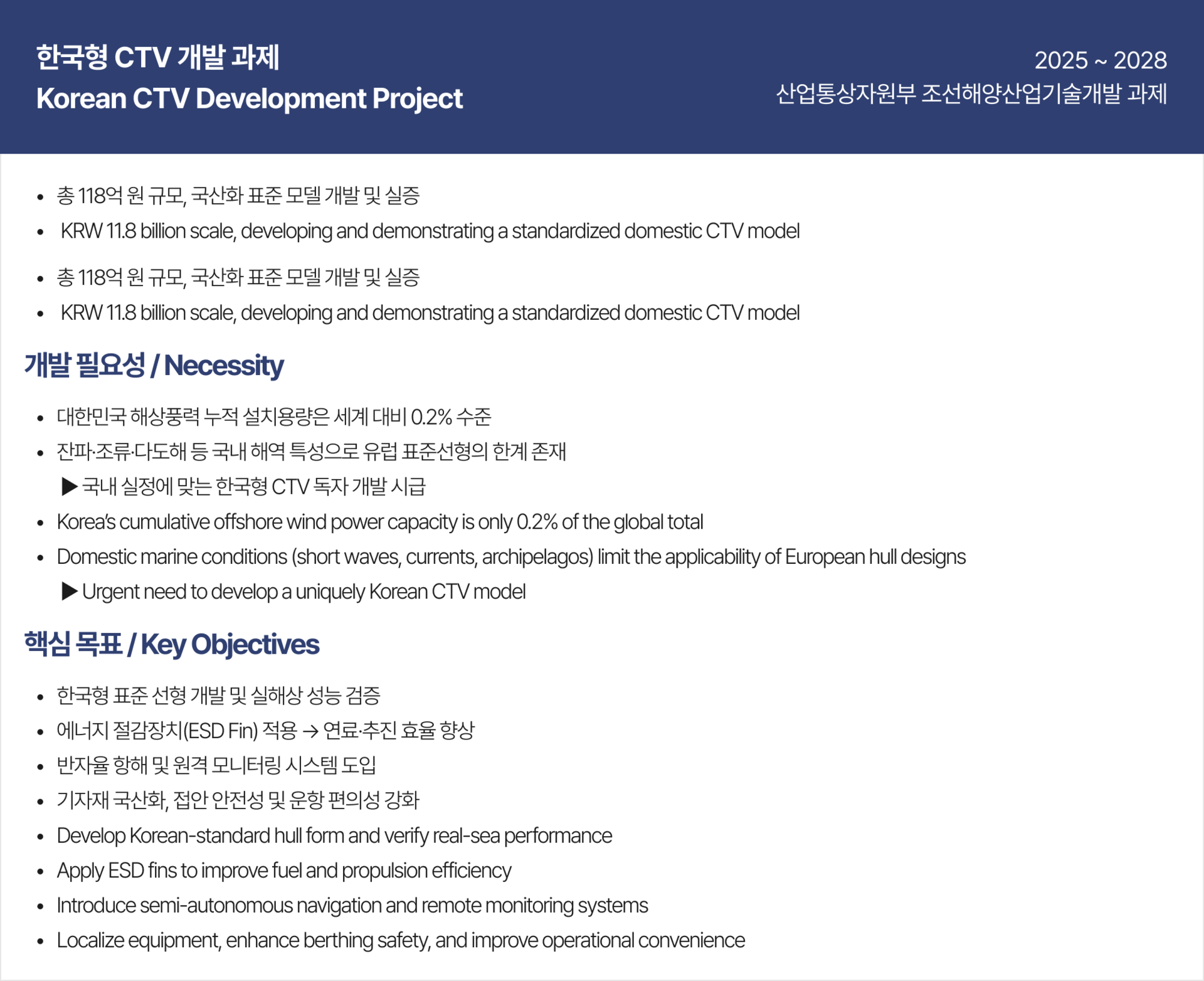 Korean-standard CTV tailored to domestic marine conditions, in line with the growth of offshore wind power.
